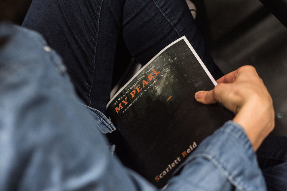 The color transitions can be seen during the book reading event. the book cover had to match the room and Scarlet Reid.